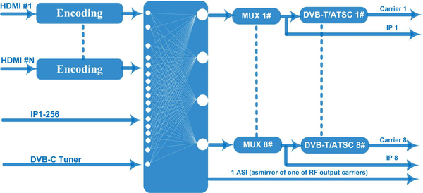 * Hỗ trợ đầu ra 8 MPTS IP (chỉ cổng DATA2) qua UDP, RTP / RTSP-- DVB-T / ATSC RF ra