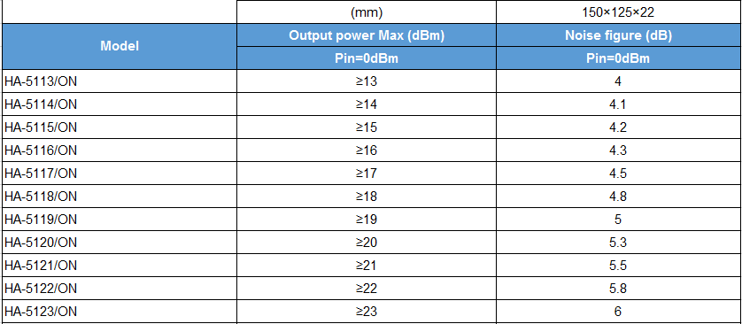 Bộ khuếch đại Quang EDFA HA-5100 được trang bị công suất đầu ra có độ bão hòa cao, NF thấp. Nó được áp dụng cho văn phòng trung ương, cũng như các mạng truyền thông quang học khác. Khuếch đại quang HA-5100 được áp dụng phổ biến nhất và rộng rãi hơn so với các bộ khuếch đại quang học khác trong hệ thống CATV.