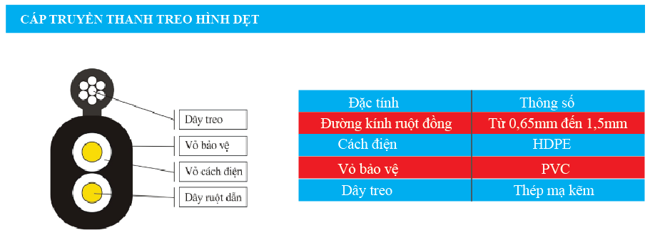 1, Cáp truyền thanh treo hình dẹt: