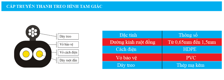1, Cáp truyền thanh treo hình tam giác: