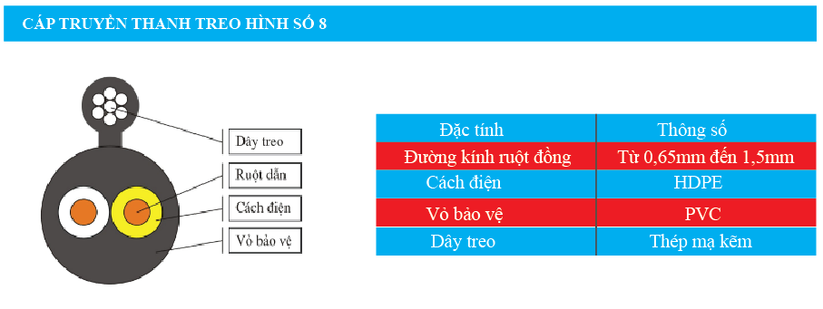 1, Cáp truyền thanh treo hình số 8
