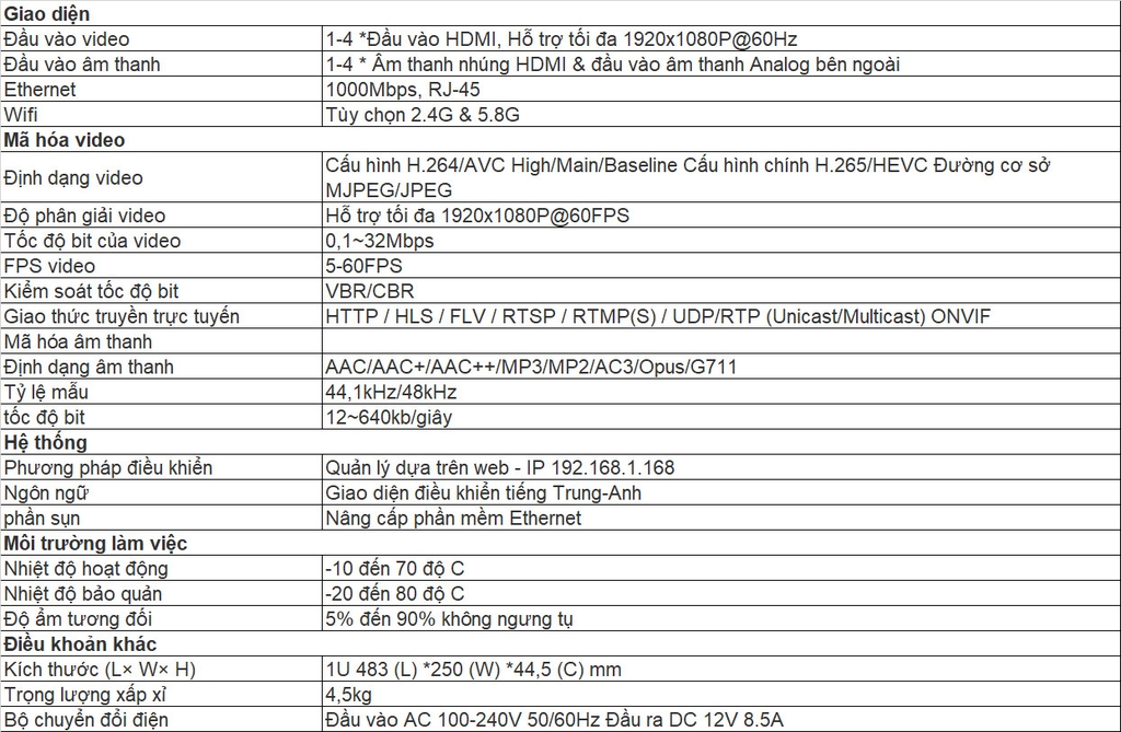 1. Hỗ trợ đồng thời mã hóa và đầu vào HDMI 1-4 kênh.