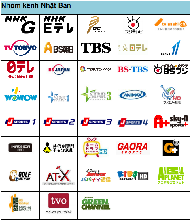 Gói kênh truyền hình IPTV Nhật Bản thu trên 40 kênh Truyền hình Nhật Bản.