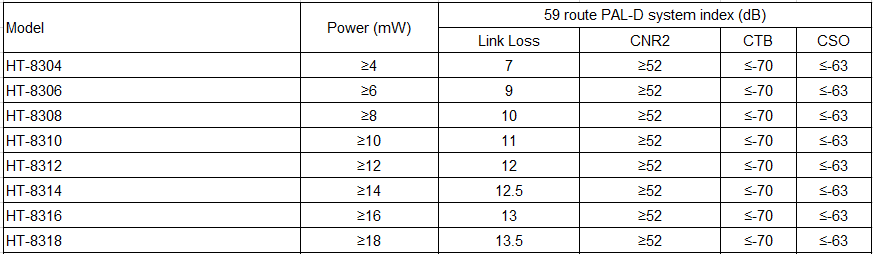 Máy phát quang 1310nm HT-8300 được điều chế trực tiếp, sử dụng laser DFB tuyến tính cao của thương hiệu nổi tiếng trên thế giới và được xây dựng trong mạch điều chỉnh biến dạng hoàn hảo và laser APC, mạch điều khiển vòng kín ATC. Tất cả các thông số vận hành của bộ điều khiển trực tiếp được điều khiển bởi bộ vi xử lý.
