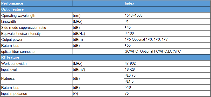 Công nghệ điều chế bên ngoài 1550nm cho Máy phát quang 1550nm HT-8510HC không có tia laser chirp, độ phân tán thấp, và tỷ lệ tuyệt chủng lớn, với dải tần sử dụng trong phạm vi 47 ~ 862MHz. Bộ điều chế bên ngoài không tạo ra biến dạng CSO sau sự sai lệch hợp lý. Nó có thể được theo sau bởi bộ khuếch đại khi được sử dụng trong phạm vi diện tích rộng lớn của thân cây quá dài và mạng cục bộ. Việc áp dụng WDM, các kênh quang bước sóng đa chiều có thể truyền qua một sợi quang. Cáp quang CATV 1550nm theo xu hướng phát triển hiện tại của trò chơi ba người và chất xơ đến tận nhà.