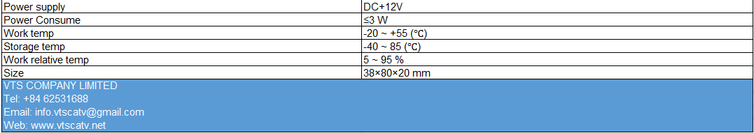 Máy thu quang FTTH - Node quang H-9122A cho Analog TV, trong Pin =-10dBm khi, Võ ≥ 69dBμV, CNR ≥ 45dB.