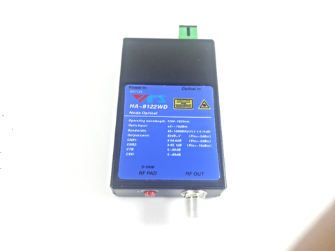 Máy thu quang - Node quang HA-9122WD : Bước sóng hoặt động 1260 ~ 1620nm. Máy thu quang - Node quang HA-9122WD. Băng thông hoặt động 47-1000MHz, tín hiệu RF ra: 82db.
