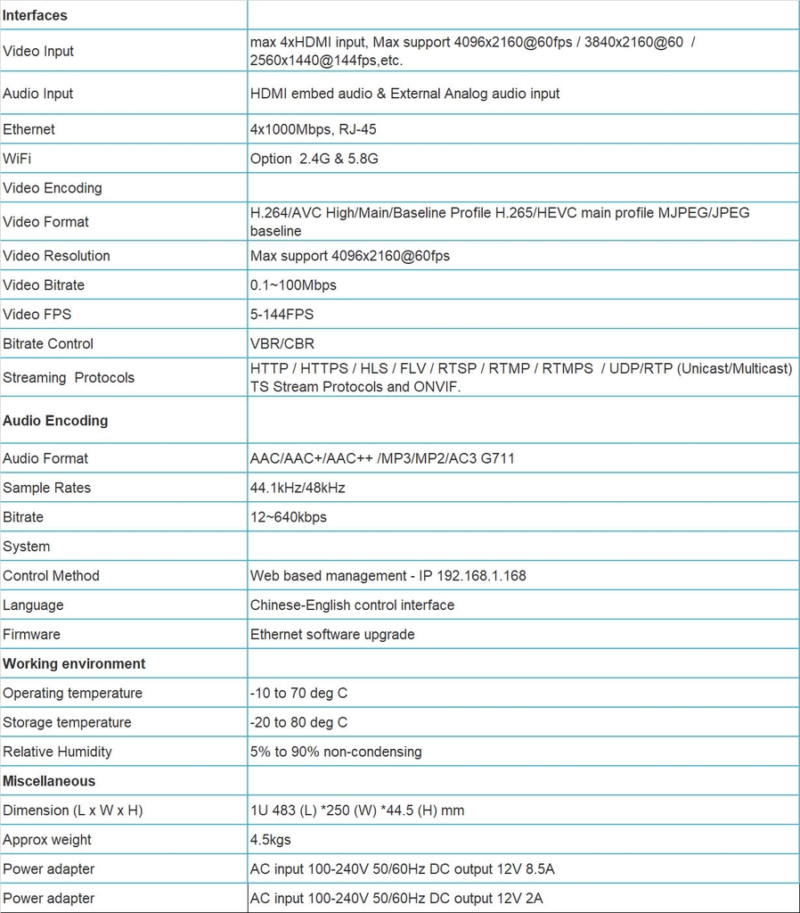 5. Hỗ trợ 4K SMPTE 4096x2160@60fps / 3840x2160@60 / 2560x1440@144fps .. v.v., đầu vào và mã hóa HDMI