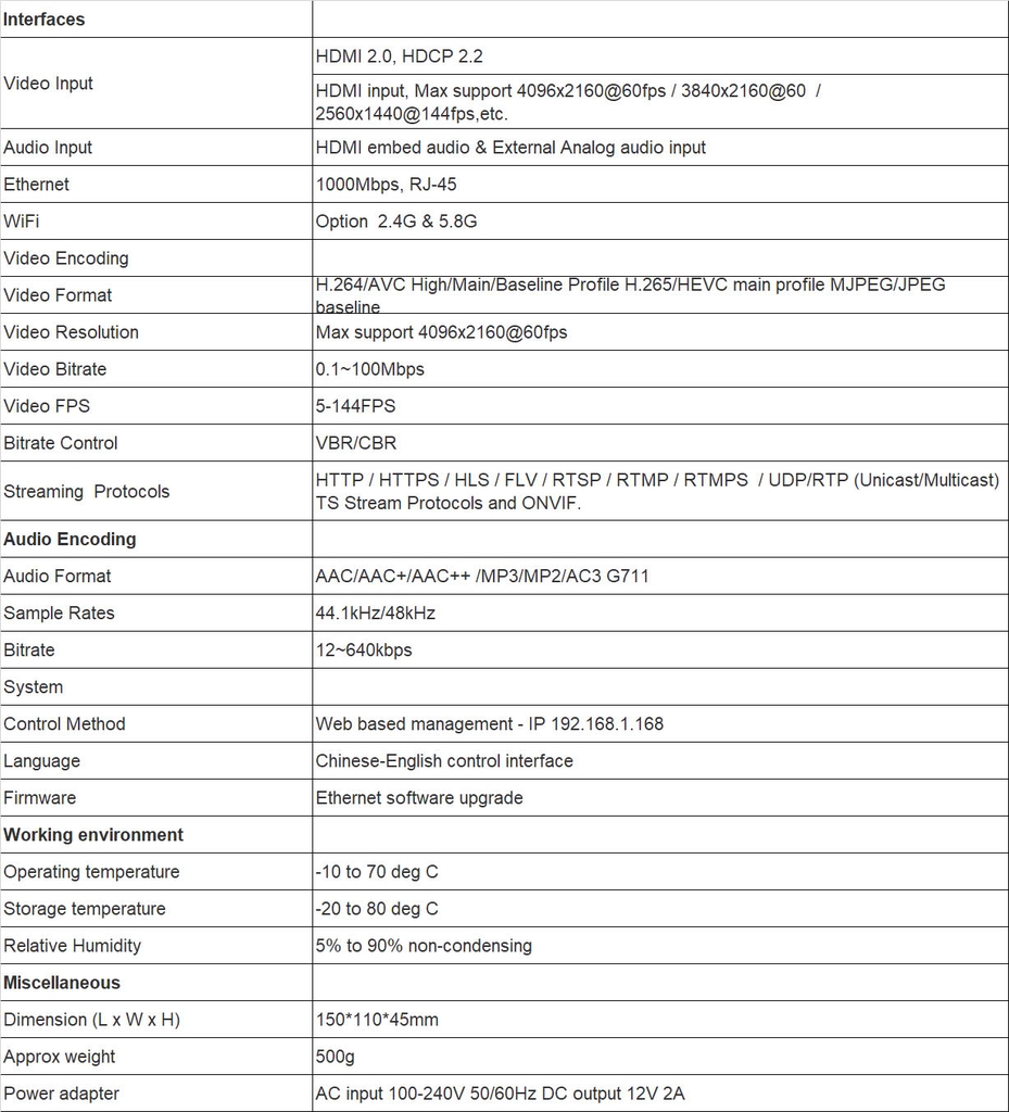 5. Hỗ trợ 4K SMPTE 4096x2160@60fps / 3840x2160@60 / 2560x1440@144fps .. v.v., đầu vào và mã hóa HDMI
